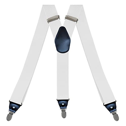 SDGBCXD Bretelles pour Hommes, Bretelles Vintage for Homme, Robustes, Grandes Tailles, 4 Clips, Dos en X Ajustable(White)