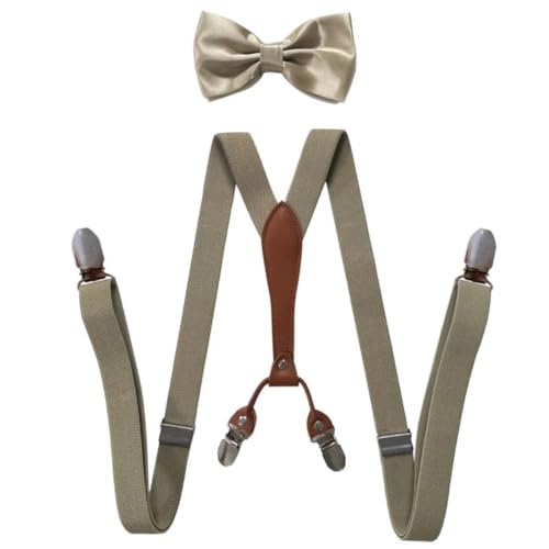 CHENWEIHAI Bretelles Suspender D’Homme avec Nœud Papillon 3 Pinces Ensemble De Bretelles Pantalon Décontracté Vintage Masculin Bretelles À Bretelles (Kaki Foncé)