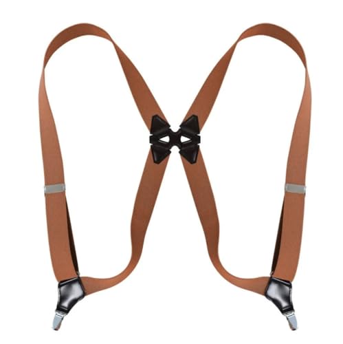 SDGBCXD Bretelles pour Hommes, Bretelles Vintage for Homme, Robustes, Grandes Tailles, 4 Clips, Dos en X Ajustable(Brown)