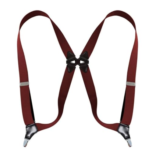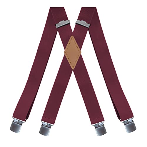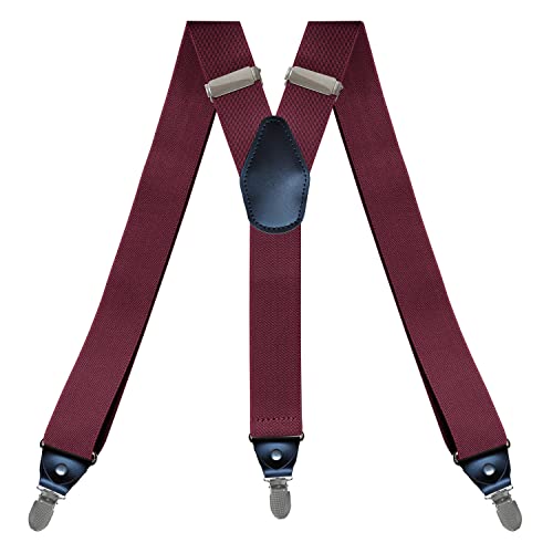 SDGBCXD Bretelles pour Hommes, Bretelles Vintage for Homme, Robustes, Grandes Tailles, 4 Clips, Dos en X Ajustable(Wine Red)