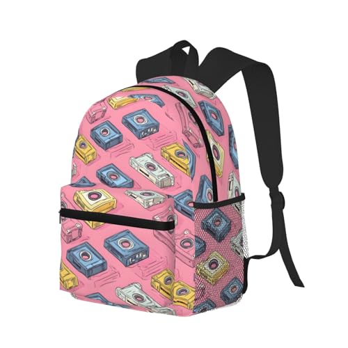 Sac à dos de voyage pour ordinateur portable pour homme et femme – Sac à dos de plage léger et résistant à l'eau, sac de voyage à imprimé appareil photo vintage rose avec bretelles réglables