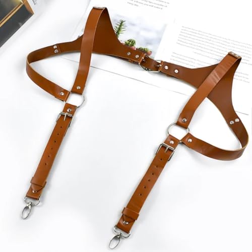 CHENWEIHAI Bretelles Suspender Gothiques Hommes en Cuir Vintage 25 Mm Attelles pour Hommes Adultes Ajustent La Bretelle D’Épaule Accessoires pour Ceinture Homme (Marron)