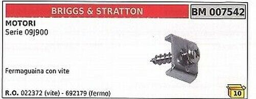 Fermeture Avec Vis BRIGGS&STRATTON Pour Moteur Tondeuse Série 09J900