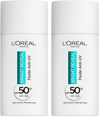 L’Oréal Paris - Fluide Anti-UV SPF50+ - Enrichi en Niacinamide - Protège & Corrige les Taches - Pour Tous Types de Peau - Bright Reveal - 50 ml (Lot de 2)