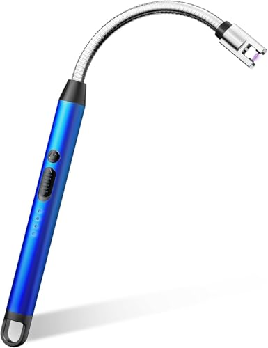 RSBYE Flamme Briquet Électrique Indicateur de Batterie Briquet USB C Plasma Rechargeable Briquets Coupe-Vent, Personnalisé Briquets pour Bougies/Grill(Bleu)