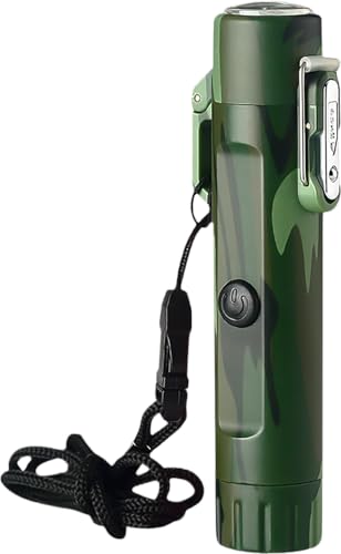 lcfun Briquet à Arc électrique, étanche, Coupe-Vent, Briquet Plasma Rechargeable par USB, Briquet électronique avec sifflet d'urgence pour Camping, Aventure (Camouflage)