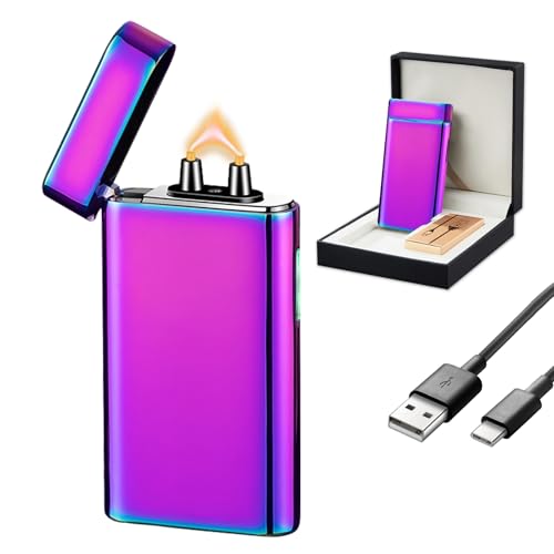 SKRFIRE Briquet plasma coupe-vent et sans flamme - Double arc électronique, rechargeable USB, briquet électrique d'extérieur (multicolore)
