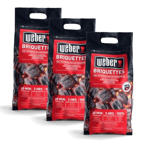 Weber briquettes pour Barbecue (Carton de 12 kg), composé de 3 Paquets de 4 kg, pour Une Braise Longue et constante, Bois 100% Naturel, Produit de l'UE, Issu de Sources durables, certifié FSC