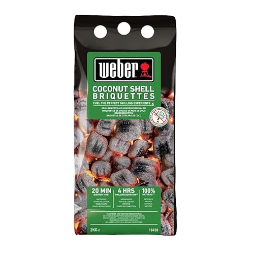 Weber Briquettes de Coques de Noix de Coco (2kg), performantes, pour Une Combustion Longue et constante, idéales pour Griller longuement Les Aliments, 100% Naturelles (18450)
