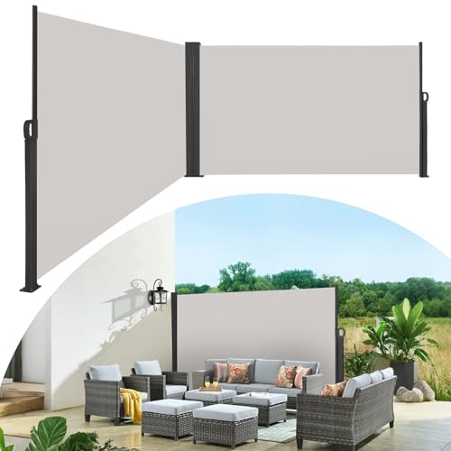 Aufun Paravent extérieur, 160 x 600 cm Store latéral Double, Brise Vue rétractable Coupe-Vent pour Jardin, Balcon, terrasse, Store latéral Vertical, Gris