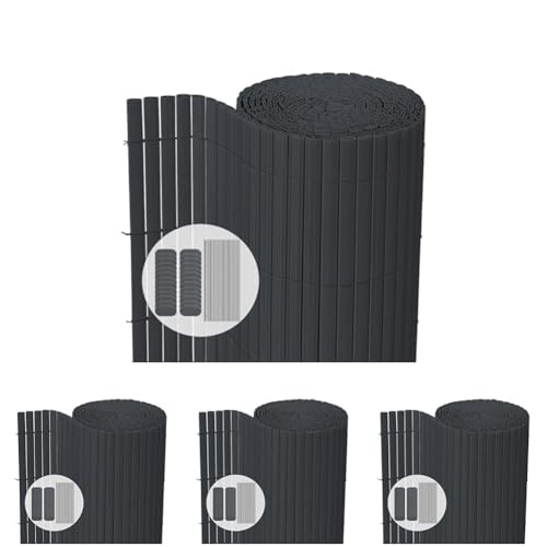 VOUNOT® Canisse en PVC Brise Vue Ultra Renforcé avec Attaches de Fixation Double Face pour Jardin Balcon et Terrasse Résistante à la Corrosion et aux Intempéries 80x500cm Gris (Lot de 4)