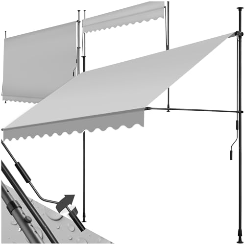 tectake Store banne sans Perçage Auvent Marquise Retractable avec Manivelle Multi-Fonction Store latéral Enroulable Brise Vue Brise Soleil Opaque en Aluminium - Gris Clair, 300 x 180 cm