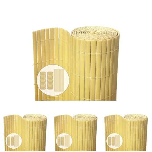 VOUNOT® Canisse en PVC Brise Vue Ultra Renforcé avec Attaches de Fixation Double Face pour Jardin Balcon et Terrasse Résistante à la Corrosion et aux Intempéries 100x300cm Beige (Lot de 4)