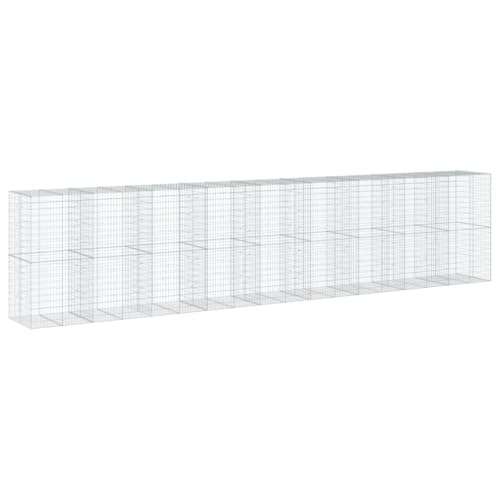 HETFTJN Gabion avec couvercle, 1100 x 100 x 200 cm, argenté, fer galvanisé, fil inoxydable de 3,5 mm, pour jardin, brise-vue, plate-bande surélevée, tuteur