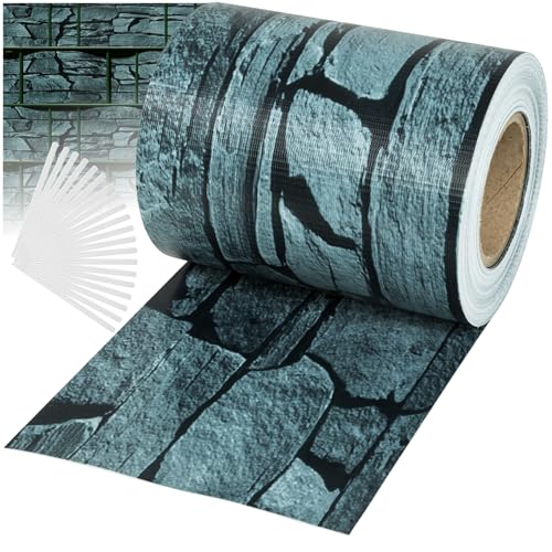 WOLTU Bandes Brise-Vue en PVC de 450g/m², Rouleau Brise-Vue Occultant 19cm x 35m, Résistant au Vent et au Soleil, pour Clôture, Jardin, Balcon, avec 25 Clips de Fixation, en Motif Pierre