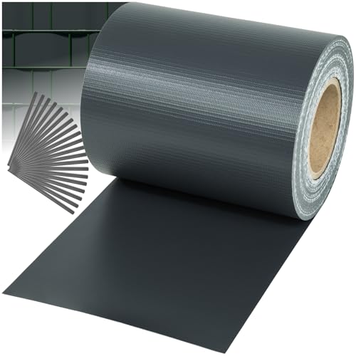 WOLTU Bandes Brise-Vue en PVC de 450g/m², Rouleau Brise-Vue Occultant 19cm x 70m, Résistant au Vent et au Soleil, pour Clôture, Jardin, Balcon, avec 50 Clips de Fixation, en Gris Charbon