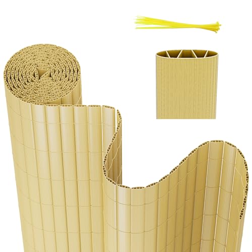 Sekey Brise Vue Balcon, Canisse PVC avec Serre-Câbles, Solide Opaque Imperméable Brise-Vue Jardin Clôture, Facile à Poser, 100 x 500 cm, Bambou