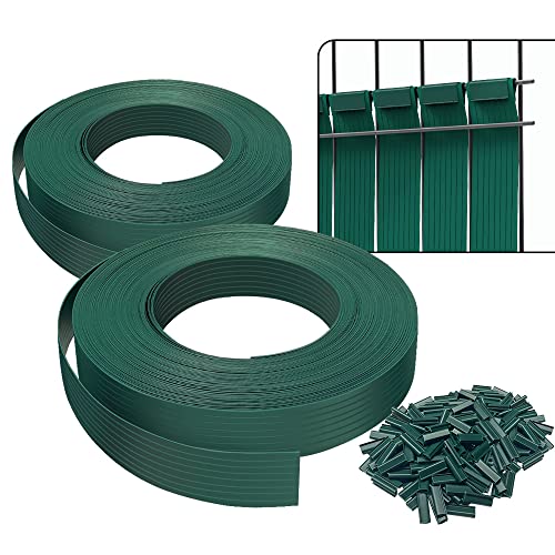 VOUNOT® Kit de lamelles Occultantes PVC 150m x 4.7cm 300 Clips Brise Vue de Qualité Bandes de Protection pour Panneau Grillagé Clôtures Rigides Vert
