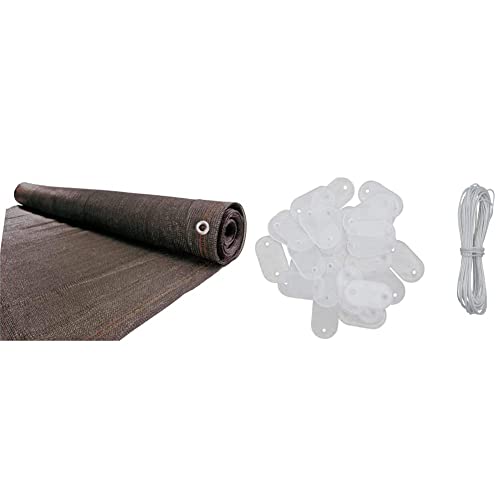 Relaxdays Attaches pour Brise-Vue, 52 pastilles avec Fils, kit de Fixation pour Pare-Soleil, Marron