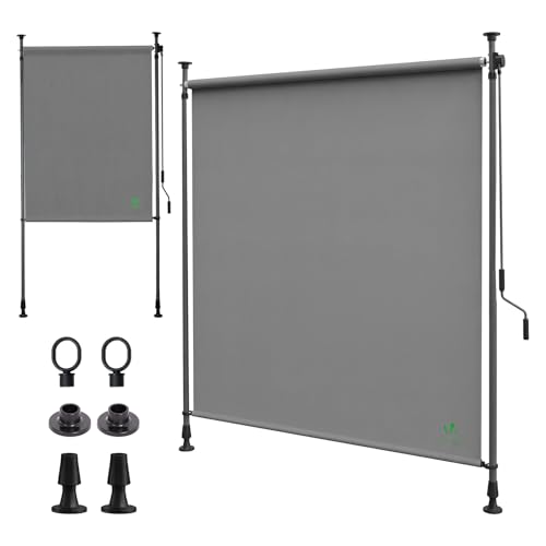 VOUNOT® Store Vertical sans Perçage 150 x 310 cm Extensible avec Manivelle Store Extérieur Protection Solaire Résistant aux Intempéries et UV Brise Vue pour Balcon Terrasse Jardin Gris