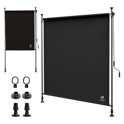 VOUNOT® Store Vertical sans Perçage 150 x 310 cm Extensible avec Manivelle Store Extérieur Protection Solaire Résistant aux Intempéries et UV Brise Vue pour Balcon Terrasse Jardin Anthracite