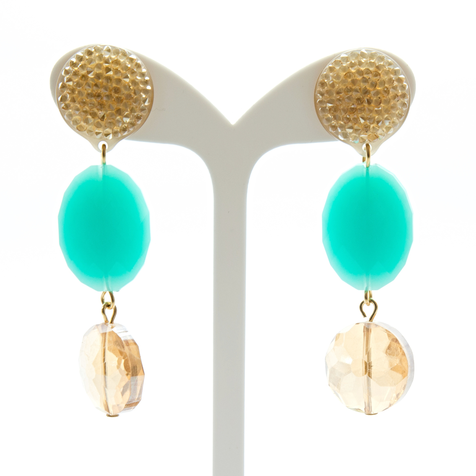 Boucle D'Oreille A Broche avec Swarovski Et Résine Beige Turquoise - Byba Bijoux
