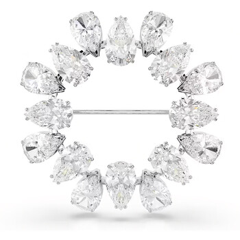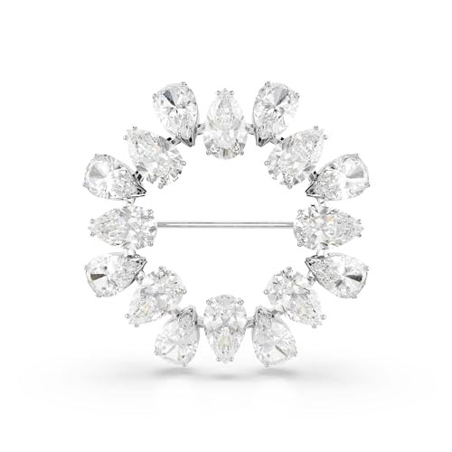 Swarovski Broche Matrix, motif circulaire serti de cristaux incolores de taille poire, design raffiné et sophistiqué, placage en métal rhodié