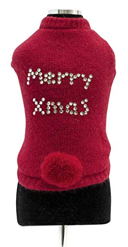 Trilly Tutti Brilli Pull en Laine avec Application Thermique Swarovski et Pompon à Broche, Rouge, Taille XL