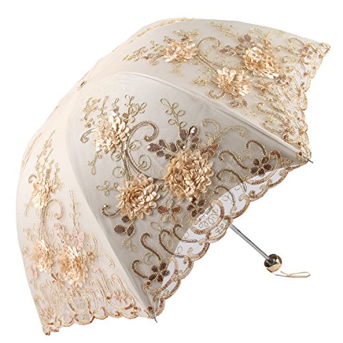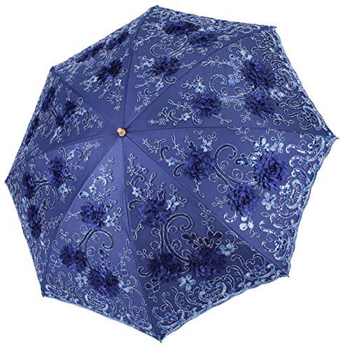 Honeystore Parasol vintage en dentelle UV Pliable Fleur Broderie, 01 Bleu marine (Bleu) - H1607C6-30