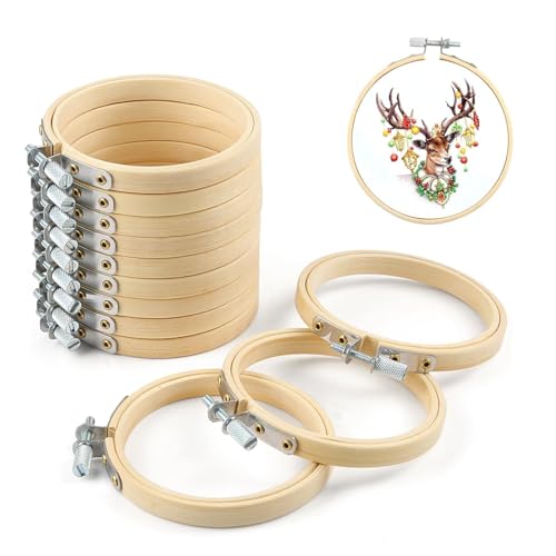 GREATRICH 12 Stück Tambour Broderie, 10cm Cercle Broderie en Bois et Anneau Bois pour Couture, Idéal Kit Broderie Debutant et Travaux Manuels, Support Stable pour le Point de Croix et Diy