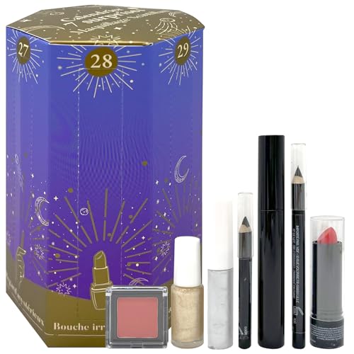 French Tendance - Calendrier de l'Après Maquillage - Blush, Vernis, Bronzer, Rouge à lèvres - 7 Surprises pour Visage, Yeux, Lèvres, Ongles - Coffret Noel Cosmétique, Beauté, Maquillage, Cadeau