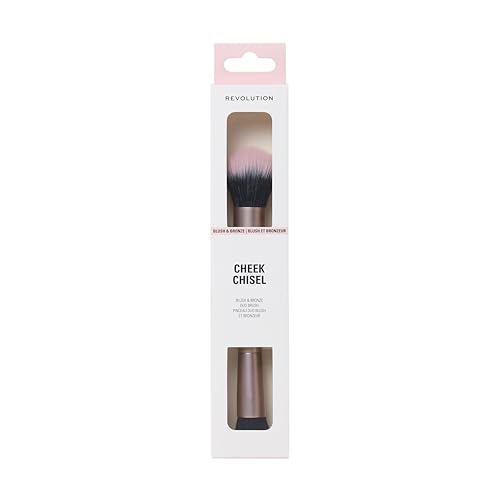 Revolution Cheek Chisel Blush & Bronze Duo Brush, Pinceau double embout pour blush & bronzer, poils synthétiques, végane