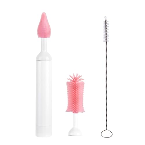 Asixxsix Brosse à biberon électrique, 3 pièces avec Brosse à biberon, Brosse à Sucette, Brosse à Paille, Essentiels de Voyage pour Les bébés, Cadeaux pour Les Nouvelles Mamans (Rose)