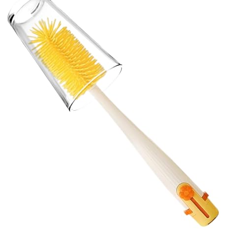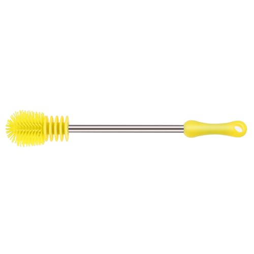 HOMSFOU Brosse à Biberon en Silicone Jaune Long Manche Ergonomique, Brosse Rotative Multifonction Antidérapante pour Nettoyage des Bouteilles de Lait et Gourdes