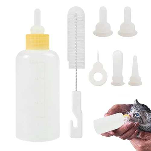 Kit d'allaitement pour animaux de compagnie – Bouteille de 60 ml, 4 tétines de rechange, brosse à biberon, ouvre-trou, 3 tétines à débit lent, mangeoire pour petits animaux | Ensemble d'alimentation c