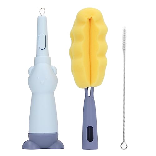 Asixxsix Brosse à biberon électrique, 3 pièces avec Brosse à biberon, Brosse à Sucette, Brosse à Paille, Essentiels de Voyage pour Les bébés, Cadeaux pour Les Nouvelles Mamans (Bleu)