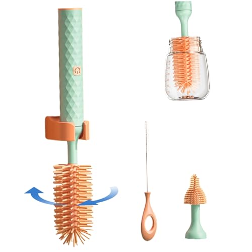 Anloximt Kit de Nettoyage de Bouteilles de Voyage | Ensemble de Nettoyage de brosses pour Bouteilles et pailles,Rotatif à 360 degrés, 4 pièces Bottlespark pour Brosse à biberon et Ensemble de brosses
