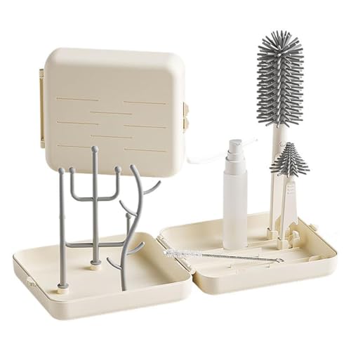 Brosse À Biberon De Voyage | Kit de Nettoyage Portable pour Voyage avec Etui de Rangement | Nettoyeur Portable Séchant Pliable Rack Vertical pour Camping Avion - pour Alimentation Camping