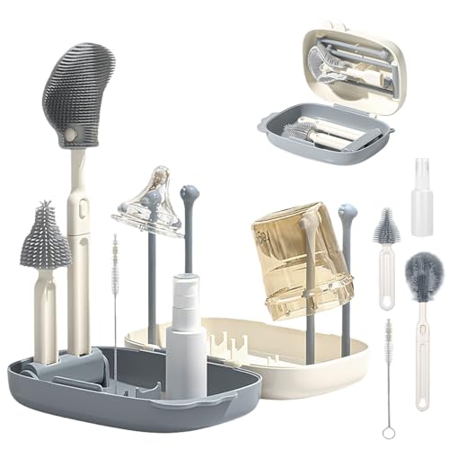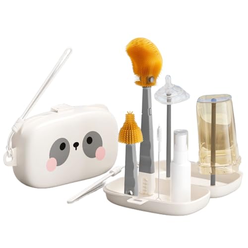Kit de nettoyage de biberons de voyage | Kit de nettoyage 6 en 1 pour biberon | Brosse à biberon, brosse à paille, brosse à tétons, égouttoir à biberons, solution de nettoyage complète pour la maison