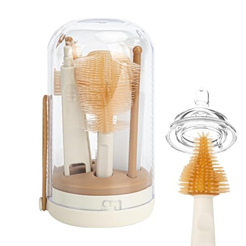 Nettoyeur De Biberon avec Brosses,Brosse à Biberon avec Socle Intégré | Goupillon Laveur avec Égouttoir Qualité Alimentaire pour Voyage en Avion, Croisière, Hôtel et Camping Extérieur