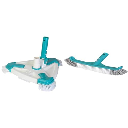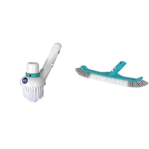 Gre 40016N - Nettoyeur de Piscine Rotatif Manuel Triangulaire Blanc & 40041SN - Brosse pour Nettoyer Le Fond et Les parois de la Piscine, 25 cm