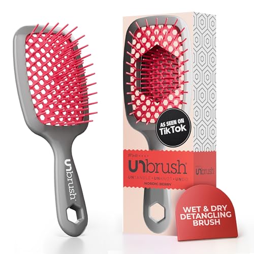 FHI Heat UNbrush Brosse Démêlante à Cheveux Secs ou Mouillés, Brosse à Cheveux Aérée, Brossage sans Douleur, Tous Types de Chevelure, Picots DuoFlex Antistatiques, Manche Léger, Rose Foncé