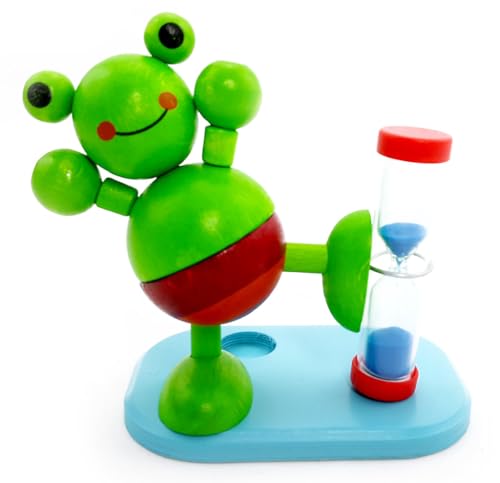 Hess Holzspielzeug 14520 Sablier de brossage des dents en bois avec porte-brosse pour enfants, fabriqué à la main avec sable coloré