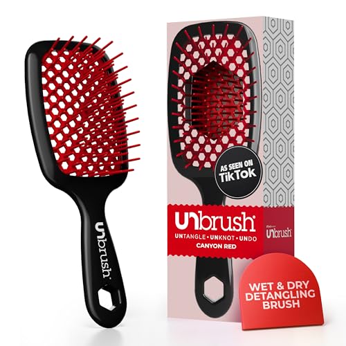 FHI Heat UNbrush Brosse Démêlante à Cheveux Secs ou Mouillés, Brosse à Cheveux Aérée, Brossage sans Douleur, Tous Types de Chevelure, Picots DuoFlex Antistatiques, Manche Léger, Rouge Canyon