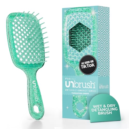 FHI Heat UNbrush Brosse Démêlante à Cheveux Secs ou Mouillés, Brosse à Cheveux Aérée, Brossage sans Douleur, Tous Types de Chevelure, Picots DuoFlex Antistatiques, Manche Léger, Vert Turquoise
