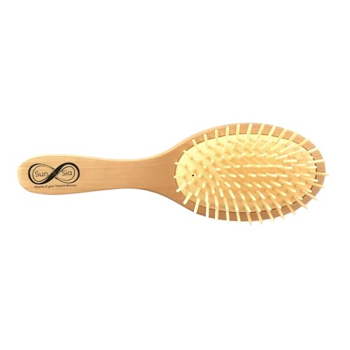 Brosse à Cheveux en Bambou Naturel Végan - Démêlante, Antistatique et Respectueuse de l’Environnement - 109 Picots Souples sur Coussin pour un Brossage agréable avec Effet Massant - Sun&Sia