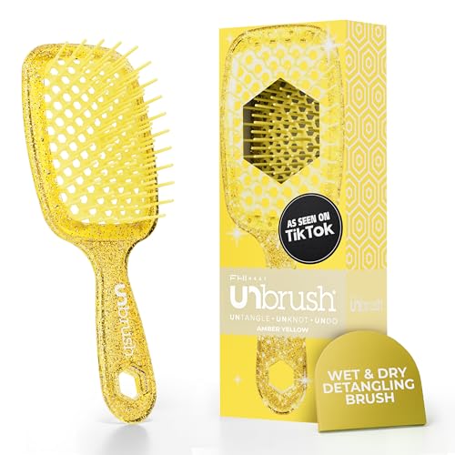 FHI Heat UNbrush Brosse Démêlante à Cheveux Secs ou Mouillés, Brosse à Cheveux Aérée, Brossage sans Douleur, Tous Types de Chevelure, Picots DuoFlex Antistatiques, Manche Léger, Jaune Ambre
