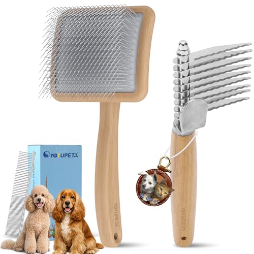 YOYUPETA Brosse à poils longs pour caniches, gribouillis dorés et chats – Kit de toilettage 3 pièces avec peigne démêlant et peigne pour animaux domestiques, grand manche en bois pour enlever les