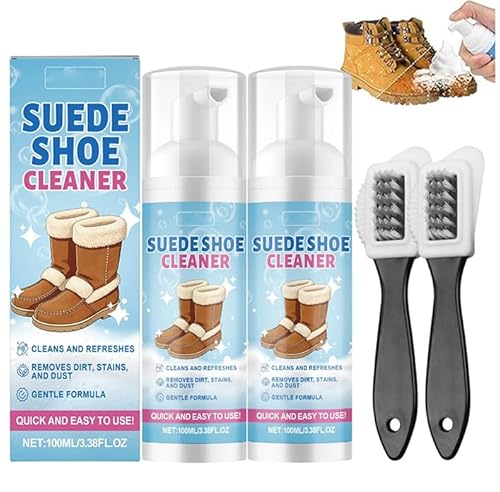 Nettoyant daim chaussure,suede cleaner,nettoie et protège contre la saleté et les taches,Brosse à daim incluse pour chaussures,sandales,baskets,bottes,sacs et vestes,restaure la texture (2Set)