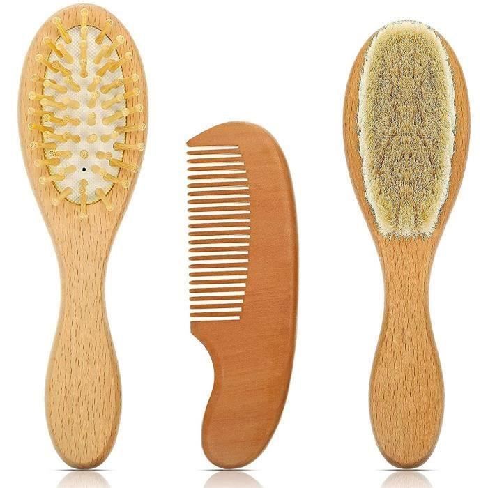 CHANGM 3 PièCes Ensemble De Brosse à Cheveux Et Peigne Pour BéBé Pour Nouveau-Né Brosse à Cheveux En Soies De ChèVre